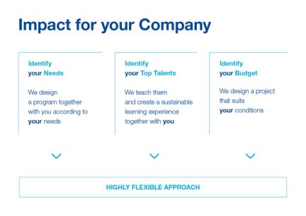 Teamwork is often more efficient than entrusting tasks or large projects to single managers. We believe in team effort and in a joint learning experience to amplify the program's impact. Therefore, we offer special conditions for companies who would like multiple employees to participate in one of our Open Programs.